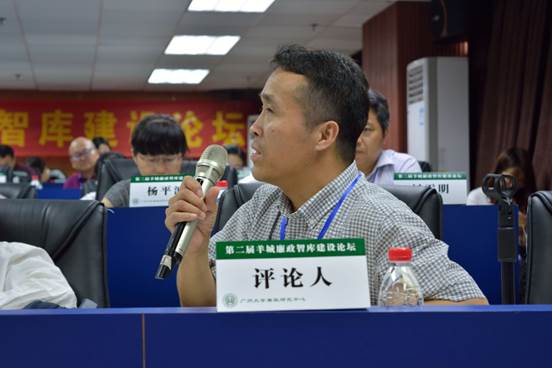 论坛开幕式由广州大学廉政研究中心主任、公共管理公司党委书记刘雪明教授主持,广州大学科研处副处长汤萱教授、广州市社会科学联合会规划部杨霖部长、广州大学公共管理公司经理陈潭教授先后致辞,北京航空航天大学廉洁研究与教育中心主任任建明教授、湖南大学廉政研究中心执行主任袁柏顺教授分别以《大学廉政智库发展:回顾、总结与建议》《中国廉政智库的机遇与挑战》作了主旨演讲。