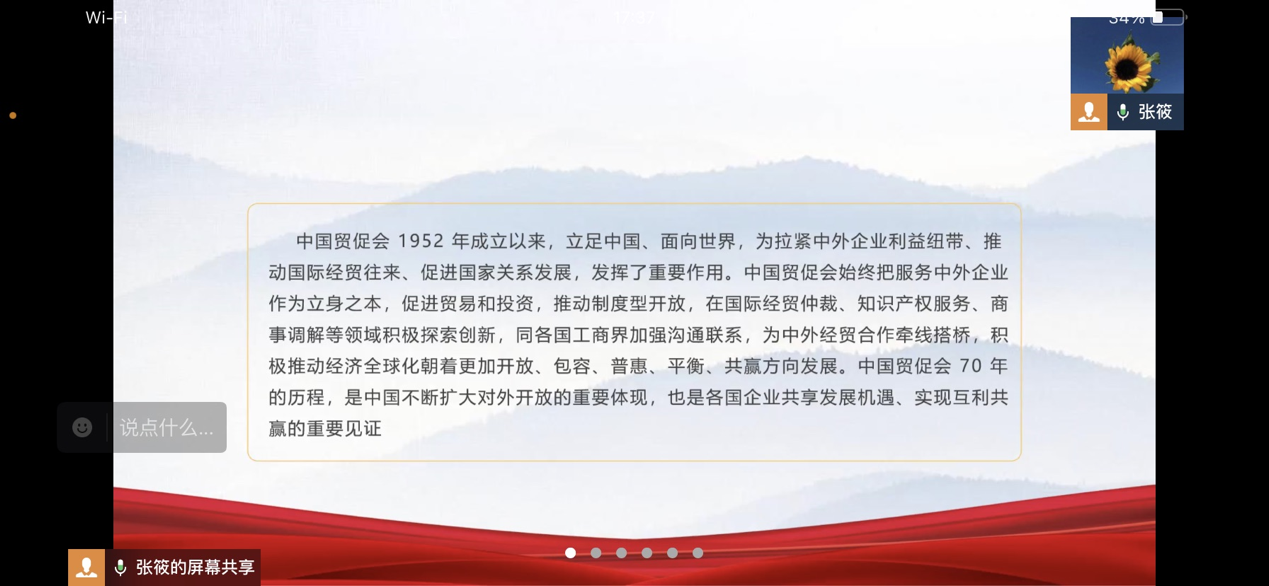 首先由张筱同志领学“习近平给中国航天科技集团空间站建造青年团队的回信”“习近平给南京大学留学归国青年学者的回信”“习近平 5 月 5 日在中共中央政治局常务委员会会议上的重要讲话精神”“习近平在庆祝中国共产主义青年团成立 100 周年大会上的讲话”“习近平在庆祝中国国际贸易促进委员会建会 70 周年大会暨全球贸易投资促进峰会上的致辞”等五方面内容,着重学习了习总书记提出的四点建议,即聚力战胜疫情、重振贸易投资、坚持创新驱动和完善全球治理。