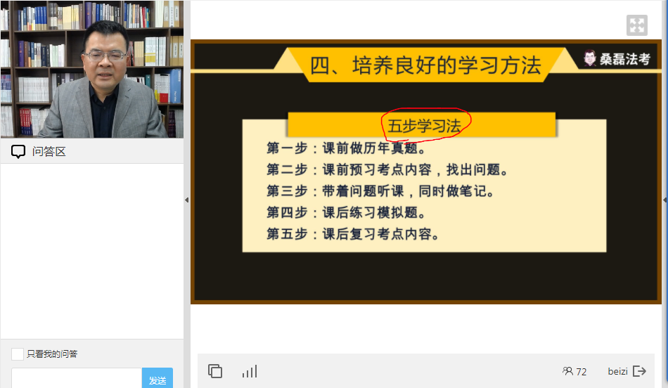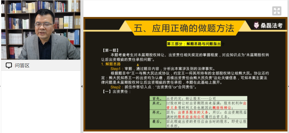 桑磊指出法考成功的秘诀是苦学+巧学+坚持,本次指导会以巧学为重点展开他分别就法考主观题涉及的民法、商法、刑法等方面的命题形式和考试重点进行了详细讲解,根据今年的主观题命题形势进行了分析考前预测,并针对明年的考试走向趋势为员工提供了各类备考方法和技巧建议。桑磊总结的五步学习法和正确的主观题答题方法让同学们受益匪浅。