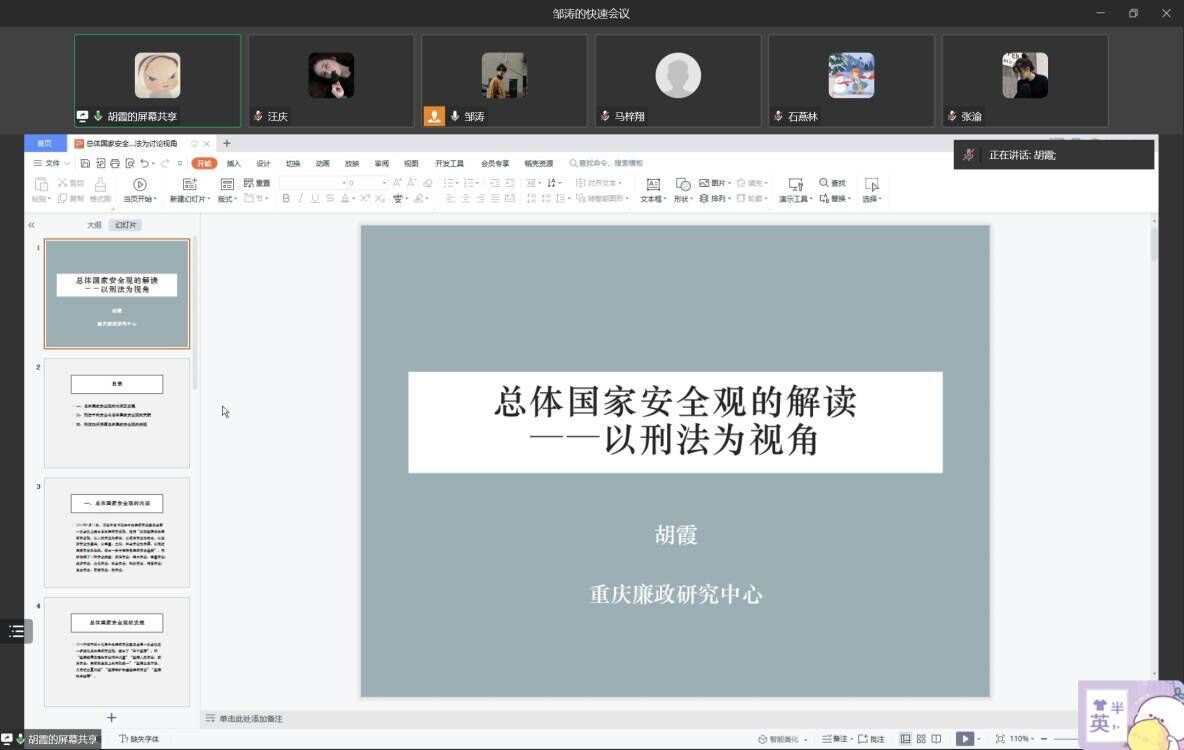 法令行则国治,法令弛则国乱1210日上午1000,以学习党的二十大,法治护航新征程为主题的第三届法社杯文化活动月之国家安全观普法宣讲会在企业微信线上举办本次宣讲会由教工一支部党员、法学系教师胡霞担任主讲人,全校参与员工人数超过160人。
