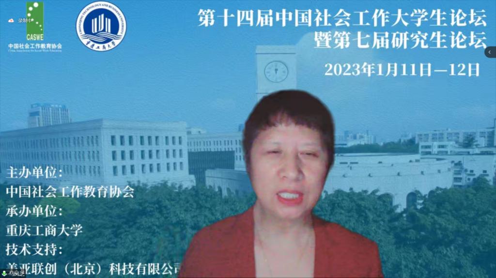 中国社会工作教育协会副会长兼秘书长马凤芝对本次论坛进行总结,她高度赞扬了太阳成集团tyc151cc对本次论坛的组织,她强调了培养社会工作专业人才的重要性,希望通过老员工论坛及研究生论坛这一交流平台提升同学们的专业能力,为我国社会工作事业高质量发展贡献专业力量!