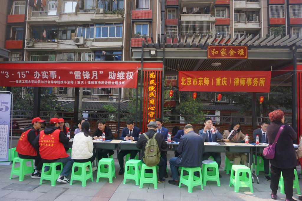 3月15日上午,公司党委副书记陈琛,教工样板党支部书记、知识产权系主任焦海洋,员工一支部书记罗观,党员教师卢博带领青年普法志愿者走进南岸区花园路街道金堰社区。两校的青年普法志愿者在党员教师和专业律师的指导下,向社区居民积极普及消费者权益保护法相关知识,热情解答他们生活中所遇到的各种法律问题。下午,青年普法志愿者服务队邀请京师(重庆)律师事务所的律师走进南岸校区法律诊所,在校内发放关于消费者权益保护的宣传单,并向校内师生介绍了一系列关于消费者权利受损时的维权途径。