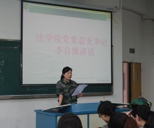 2013年6月30日15点,二团二营(法公司)在慧智楼90326召开了军训动员大会。二团二营教导员(法公司党总支书记)李自维,指导员林细妹、杨婷、陈丹妮以及参训的2012级全体学员参加了此次大会。