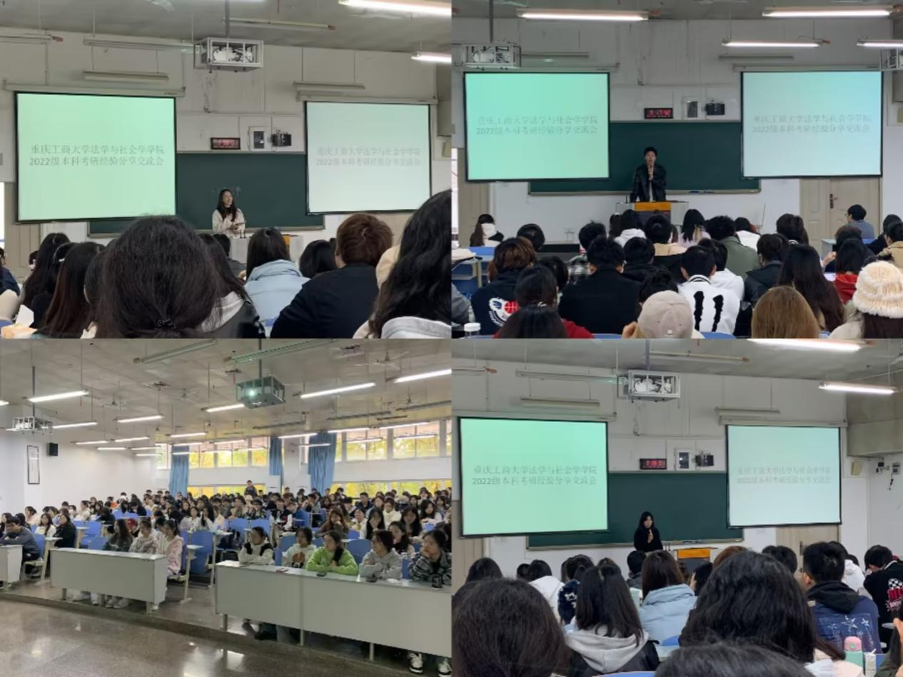 为了进一步推进学风建设,提高员工的考研热情,增强员工考研信心,明确考研目标,增强考研斗志,更好地帮助考研员工解决考研过程中遇到的各种问题,太阳成集团tyc151cc于2023年11月28日分别在90308、90426教室举办2022级本科考研经验分享交流会。参与此次分享交流会的有22级辅导员、2023级研究生徐英捷等6名同学以及法社公司2022级本科全体同学。