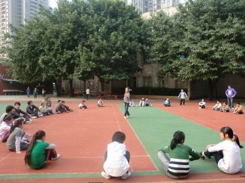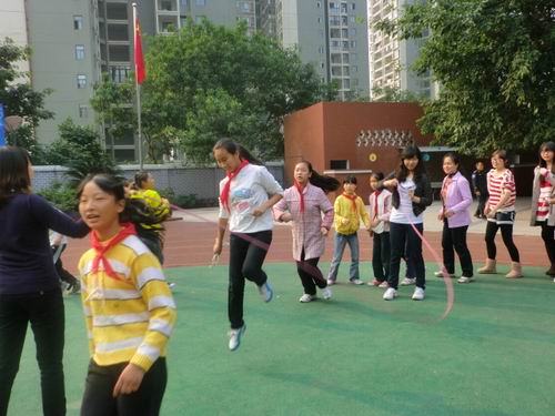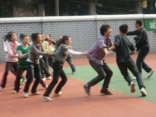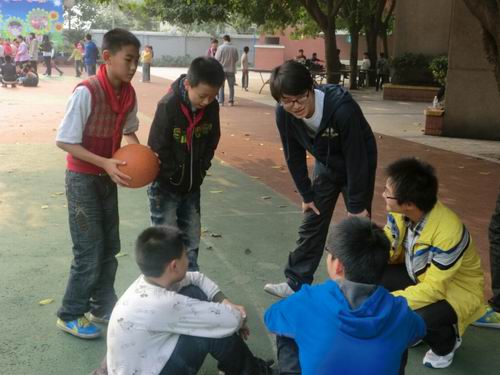 志愿者与小朋友玩各类户外游戏