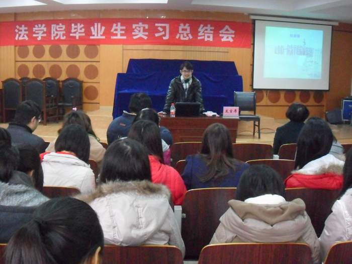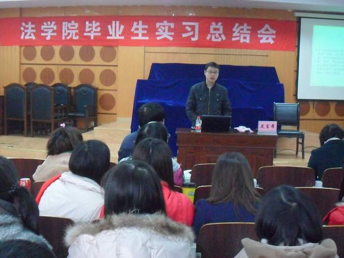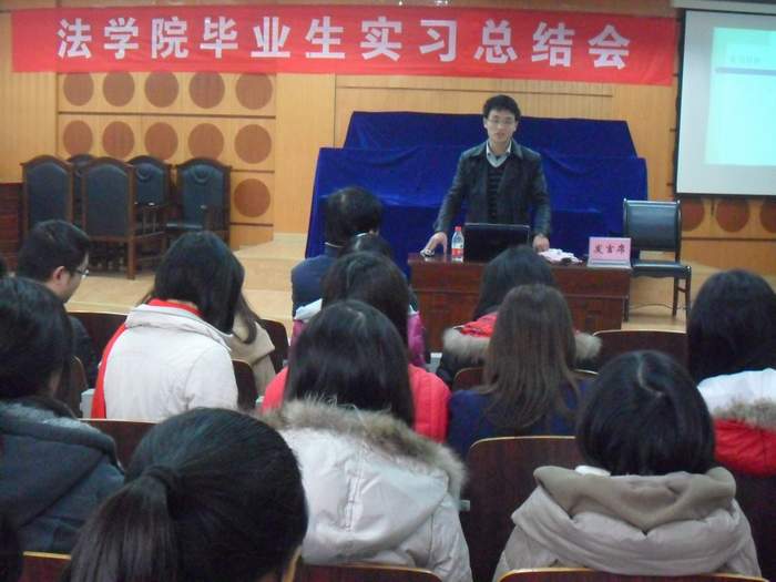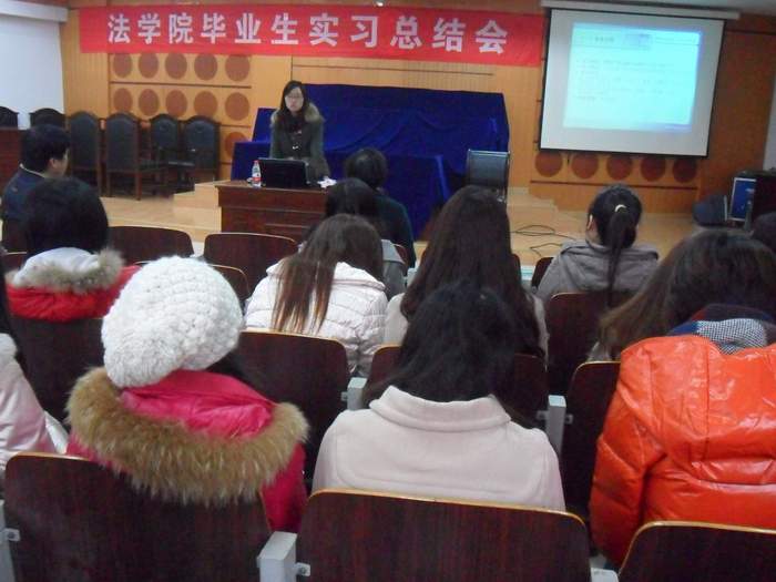 岁末年尾之际,2012届毕业生为期三个月的毕业集中实习也圆满落下帷幕,并在慧智楼模拟法庭成功召开实习总结大会。法公司经理华鹰老师和08级全体同学出席了本次会议,此次大会由08级辅导员林细妹老师主持。