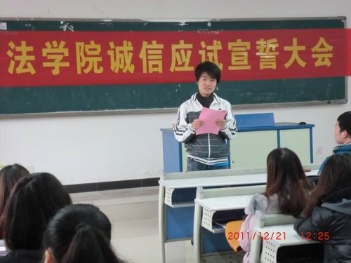 12月份已接近末尾,期末考试迫在眉睫,诚信应试之风传遍整个工商大学。12月21日,法公司分团委携手南16B1及南10楼管会、党员服务站于慧智楼90306教室成功举行了“诚信应试,争创佳绩”诚信应试宣誓大会。法公司分团委代理副书记黄河以及全体员工干部参加了宣誓大会。