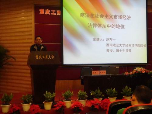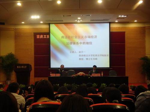 3月25日晚上,由西南政法大学民商法公司经理赵万一教授主讲的《商法在社会主义市场经济法律体系中的地位》学术讲座在博智楼7200学术报告厅举行。讲座由法公司经理华鹰主持。