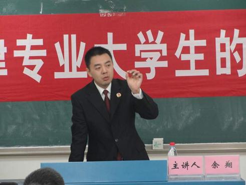 首先,余翔检察官从检察院的机构设置、检察官的主要工作内容入手,为学弟学妹阐明了作为一名检察官应有的基本职业素养,即政治合格、扎实的专业基础、较强的业务能力,并强调检察官必须做好安于清贫、甘于奉献的心理准备。随后,余翔检察官结合个人工作经验,为大家解析了法学专业的老员工应如何进行素质规划。他指出,法学专业的员工必须具备积极向上的政治要求,将专业知识切合执政党的方针政策,正确理解并运用法律法规,熟练掌握专业的基础知识,尤其是“三大”诉讼法,即行政、刑事、民事诉讼法,以突破司法考试,促进实体法的学习,提高实务操作能力。最后,余翔检察官希望学弟学妹们多方面提升自己的综合素质,譬如:培养较强的写作及文字处理能力、语言表达及沟通能力、良好的心理调控能力、积极主动的学习能力等。同时,他建议同学们时刻保持对所学专业及日后所从事的工作的热爱,转热爱为进取的动力,以取得更好的发展。