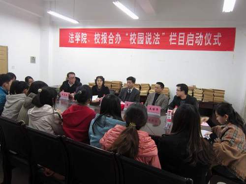 出席本次启动仪式的嘉宾有党委宣传部部长肖应红、校报编辑部主任王世华、法公司经理华鹰、法公司党总支副书记李莉莎以及“校园说法”栏目特约指导老师张忠民、钱颖萍、曾琳与全体撰稿员工。法公司分团委代理副书记黄河担任活动主持人。