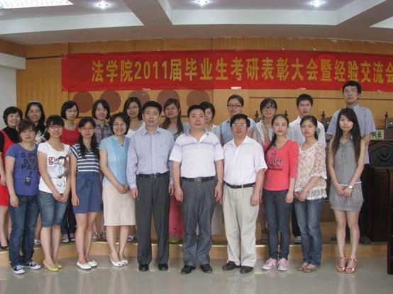 6月10日,法公司在慧智楼模拟法庭成功召开了2011届毕业生考研表彰大会暨经验交流会。法公司党总支书记杨和义、经理华鹰、副经理黄文以及毕业班辅导员林细妹出席了本次大会。此次会议由党总支副书记李莉莎主持。