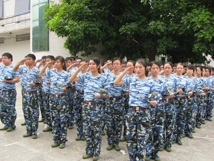 参训学员练习脱帽敬礼