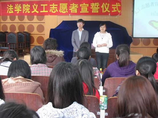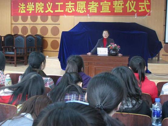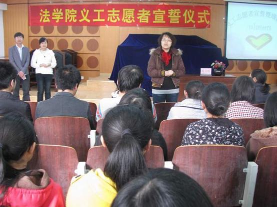 为了进一步提高法学学子服务社会的意识,增强社会责任感和使命感,3月18日下午,法公司义工志愿者协会特邀重庆市血友康复协会彭茂琳会长参加公司在慧智楼90426教室举行的志愿者宣誓仪式,并对公司义工活动的相关注意事项进行了培训和指导。法公司党总支副书记李莉莎老师、辅导员黄河老师以及义工志愿者协会全体成员出席了本次活动。