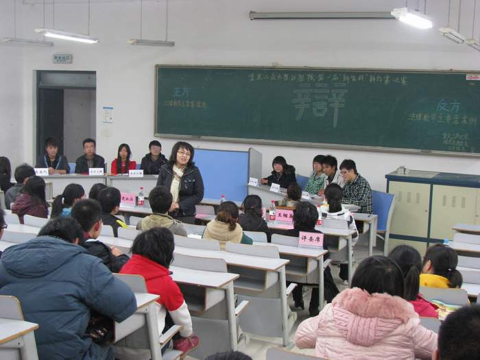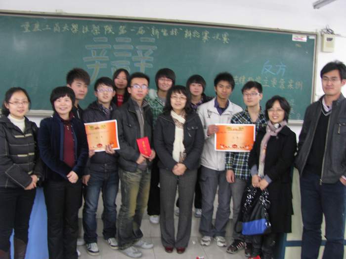 法公司2010级三个班的辩手在经过初赛的激烈角逐后,最终由一班和二班成功晋级,在此,他们将针对“法律教学主要靠理论还是实践”这一辩题展开一场冠军争夺赛。首先,正方和反方分别就“法律教学主要靠理论”以及“法律教学主要靠实践”进行了开篇立论,各自陈述了本方观点,正方认为:“理论学习更符合学习要求,更易推而广之,而案例教学覆盖面狭窄”,反方则说:“案例教学更贴近生活,更能提高教学的趣味性”,随后,大家分别就各方辩题展开了唇枪舌剑的激烈辩论,正反试图以“案情推导要用理论作基础”和提出“1+1=?”的等式”来说服反方,而反方试图引用“苏格拉底的观点和哈佛大学法公司采用案例教学的生动例子”以及提出“宪法课的实例案件跟法制史的内容哪个更让正方记忆深刻”的问题来占领上风,双方都不甘示弱,其中的自由提问环节更加带动了全场的气氛,将本次辩论赛推向了高潮。最终,正反夺得桂冠,反方自由人和正方三辩分别摘得优秀辩手和最佳辩手称号。嘉宾为以上获奖选手颁奖。