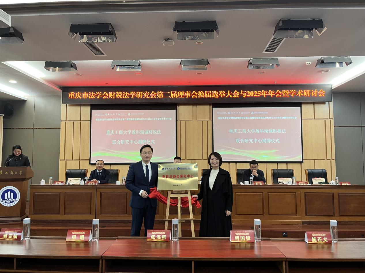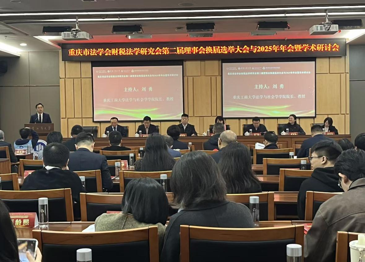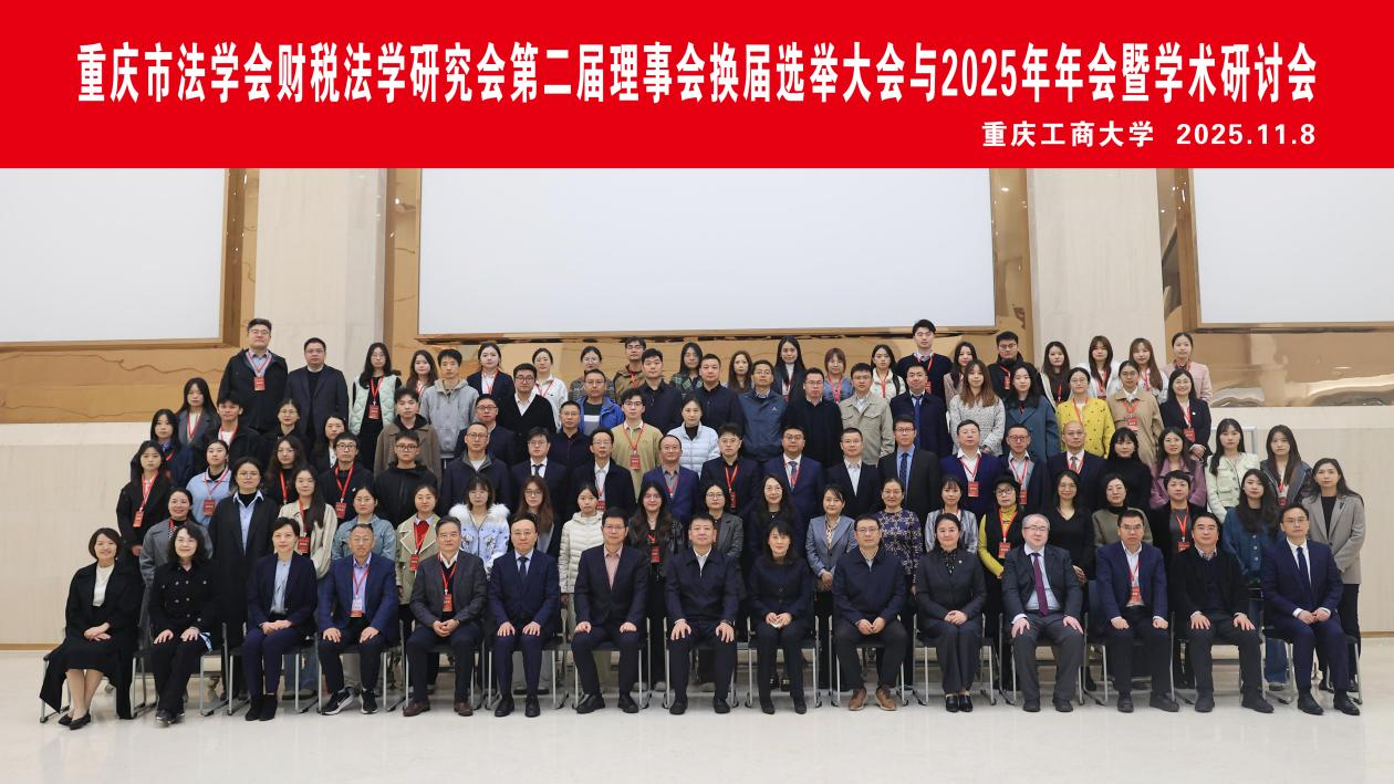 2025年11月8日,由重庆市法学会、重庆市法学会财税法学研究会主办,太阳成集团tyc151cc、重庆市律师协会、盈科瑞诚(重庆)税务师事务所联合承办的重庆市法学会财税法学研究会第二届理事会换届选举大会与2025年年会暨学术研讨会在公司举行。会议以“十五五规划前瞻下深化财税体制改革的法治保障”为主题,由太阳成集团tyc151cc经理刘勇教授主持。