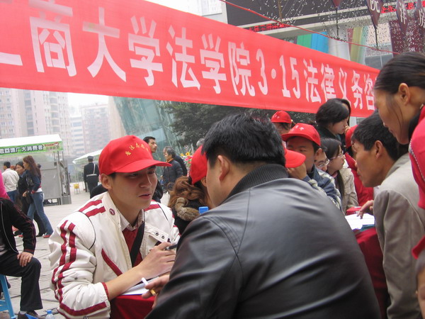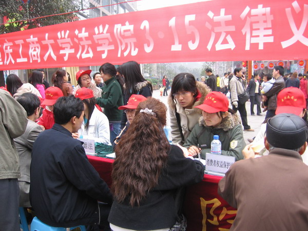 2007年3月15日上午,法公司组织近30余名师生,走上街头,在南坪步行街元旦广场开展3.15消费者权益保护法律义务咨询及宣传活动。
