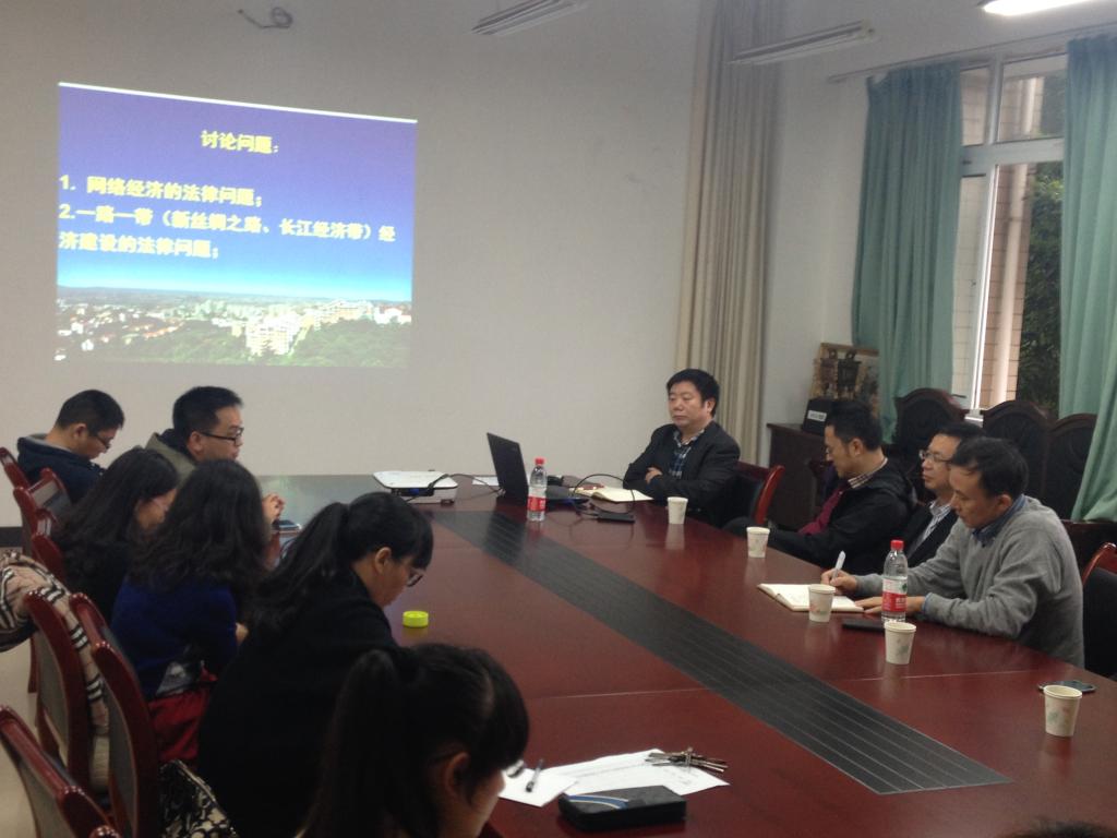 会上,项目负责人杨和义根据项目团队成员的建议,提出“网络经济的法律问题”和“两路一带建设中的法律问题”两个讨论问题,以期通过讨论集聚公司研究合力,凝练项目实施特色,参会老师分别结合自己的研究方向、基础与兴趣发表了看法。随后,研究生院经理余兴厚教授、科研处处长曾庆均教授和人事处处长赵驹教授分别为项目实施支招。余兴厚经理认为,团队建设要充分考虑内部资源整合、社会发展需求、可持续发展等因素,根据学科方向、社会需求确定2-3个研究方向,以问题导向打造2-3个有特色的科研团队。曾庆均处长建议法公司以应用型法律硕士为基础,建设带有学科方向、科学研究的2-3个团队,以此为基础,加强与校内相关团队的协同创新。赵驹处长提出,项目实施中,团队要围绕国家战略,服务国家和地方经济发展,可从地方经济立法角度,开展相关研究,产出研究成果,形成研究特色。