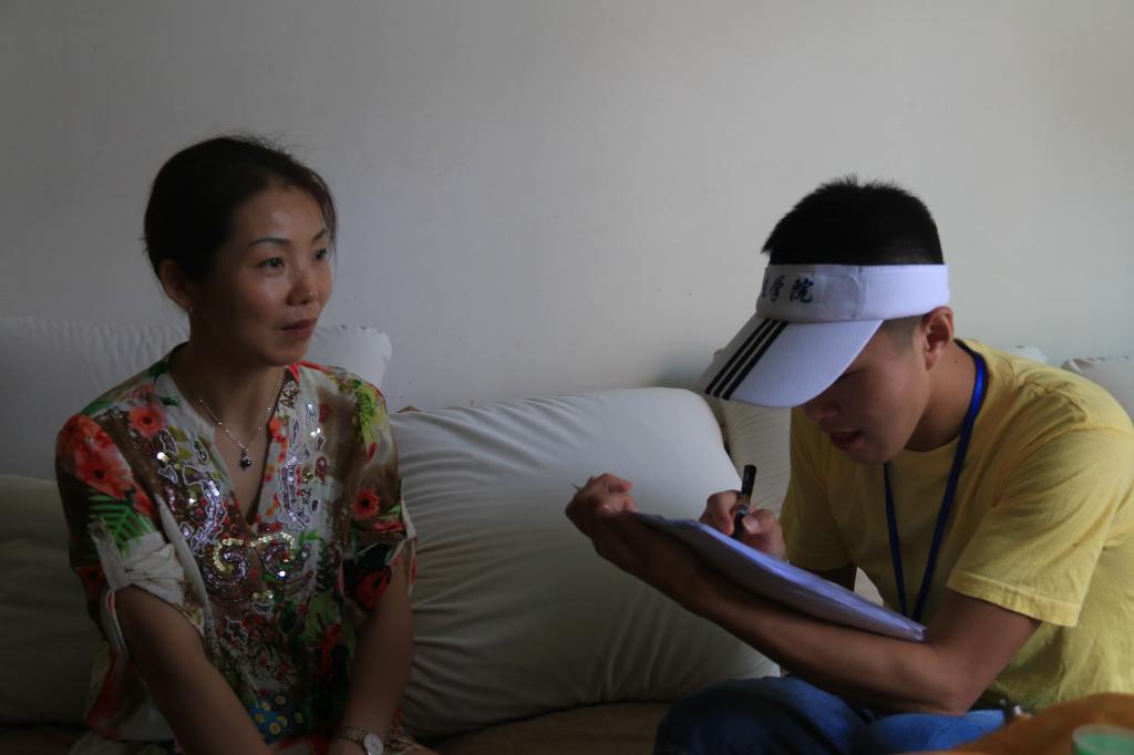 | 社会实践团成员与受访家庭互动 |