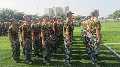 7月7日,军训的第二天,当银白的天空开始泛出点点绯红,绿色的海洋渐渐涌入操场开始新的一天的军训。顶着炎炎烈日,同学们认真执行教官的指令,挺拔的身影散发出无限的对军训生活的坚持。