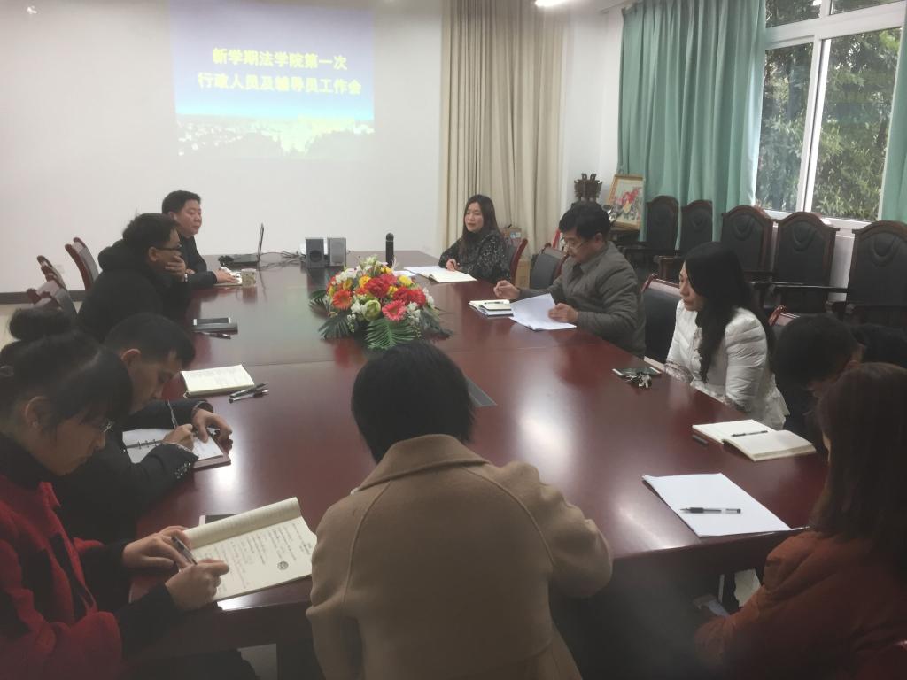 2017年2月24日上午,法公司行政人员及辅导员在慧智楼90429会议室召开新学期工作会议,公司党政领导、全体行政人员及辅导员参加了本次会议。