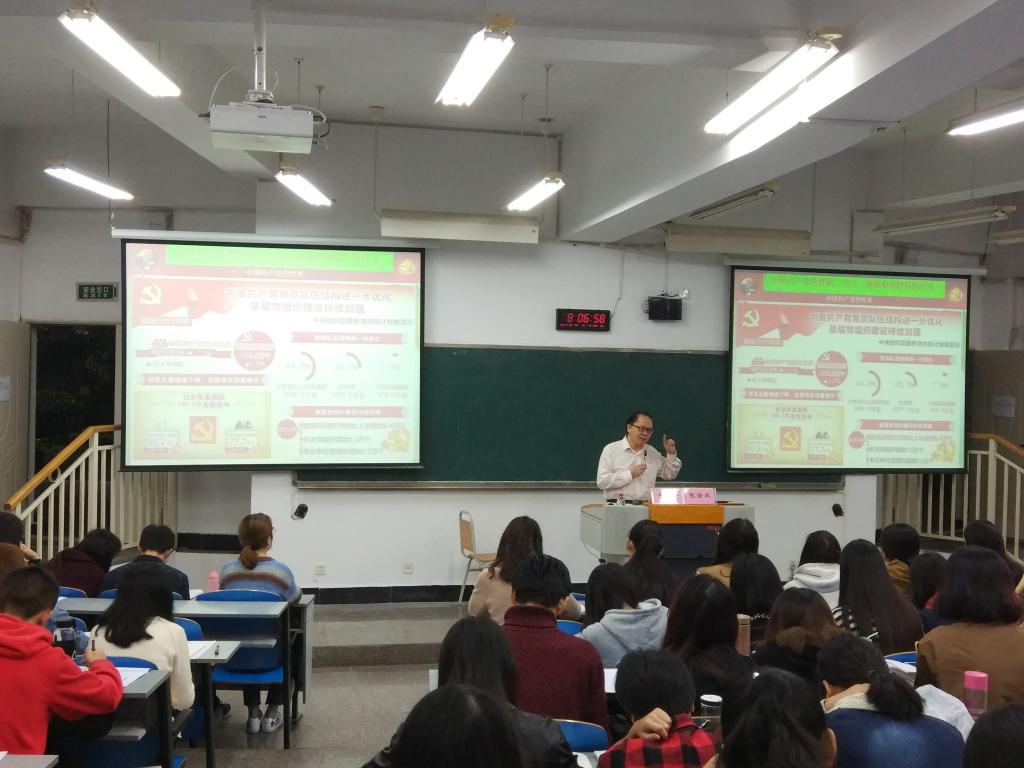 10月14日上午,马克思主义公司张渝政教授为本次入党积极分子培训班学员讲授了题为《中国共产党的性质、宗旨、纲领和现阶段的任务》的主题党课。