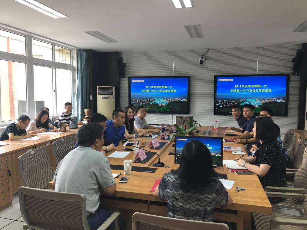 8月30日下午,法公司教职工在慧智楼90429会议室召开2019-2020年第一学期第一次全体教职工大会,公司全体班子成员和教职工参加了此次会议,会议由公司党总支书记李自维教授主持。