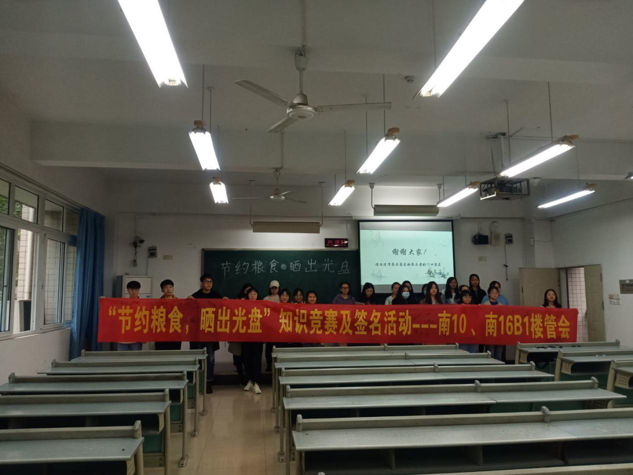 为了贯彻习总书记在党的十八大和全国教育大会上提出的“厉行节约、反对浪费”和培养德智体美劳全面发展的社会主义建设者和接班人的重要指示精神,法学与社会公司于2020年11月20日在本校慧智楼面向南10与南16B1全体同学举行了“节约粮食,晒出光盘”知识竞赛及签名活动。
