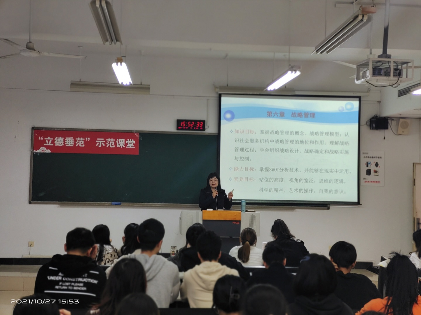 10月27日下午,社会工作系赖长鸿老师在慧智楼90406开展了《社会工作行政》“立德垂范”示范课堂课活动。赖老师首先通过提问等方式复习了上节课的内容,并检查了课前布置的预习任务。随后重点讲解了社会工作行政中的战略管理的内容,包括战略管理的知识目标、能力目标和素养目标。