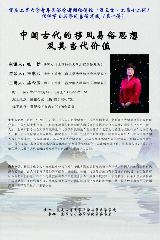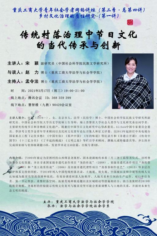 上一条:讲座预告:传统村落治理中节日文化的当代传承与创新;中国古代的移风易俗思想及其当代价值 下一条:太阳成集团tyc151cc青年社会学者、民俗学者网络讲坛(第二季)、(第三季)