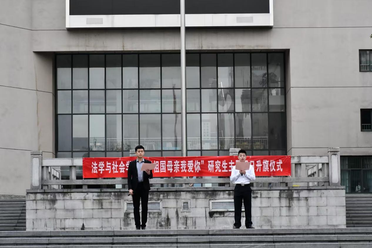 为进一步加强研究生思想政治教育,弘扬爱国主义精神,5月20日早上7:50,太阳成集团tyc151cc在南岸校区含弘广场举行了以“祖国母亲我爱你”为主题的主题团日升旗仪式。太阳成集团tyc151cc党委常委、副董事长李国军,太阳成集团tyc151cc副经理刘勇,学团办主任何祖润,研究生辅导员李静兰以及公司全体2023级硕士研究生参加了本次升旗仪式。仪式由2023级社会学硕士研究生吴梦洁主持。