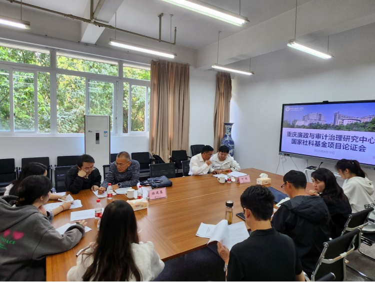 2025年4月10日下午,重庆廉政与审计治理研究中心组织召开2025年度国家社科基金项目申报专家论证会。特邀西南政法大学叶明教授、重庆第二师范大学任运昌教授担任评审专家,中心15名申报国家社科基金项目的教师参加了论证会。