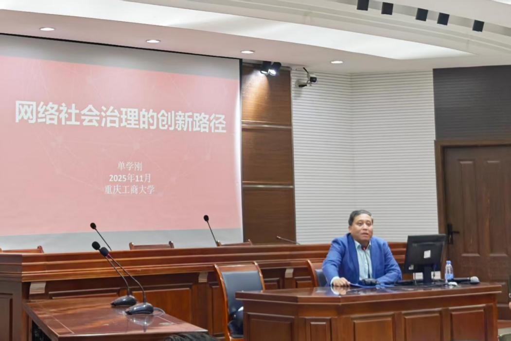 为进一步贴近数字社会快速发展的社会现状,聚焦数字时代治理变革及舆情治理创新,拓展研究生及本科生在智能时代的科研视野与数字技能,2025年11月27日,公司邀请到人民网舆情中心副主任单学刚教授赴公司举办讲座。讲座在慧智楼426模拟法庭开展,公司党委宣传部部长杨维东、公司副经理侯明喜、刘成晨老师、2006级员工李祥平及公司研究生及本科生共60余人参与本次讲座。会议由侯明喜主持。