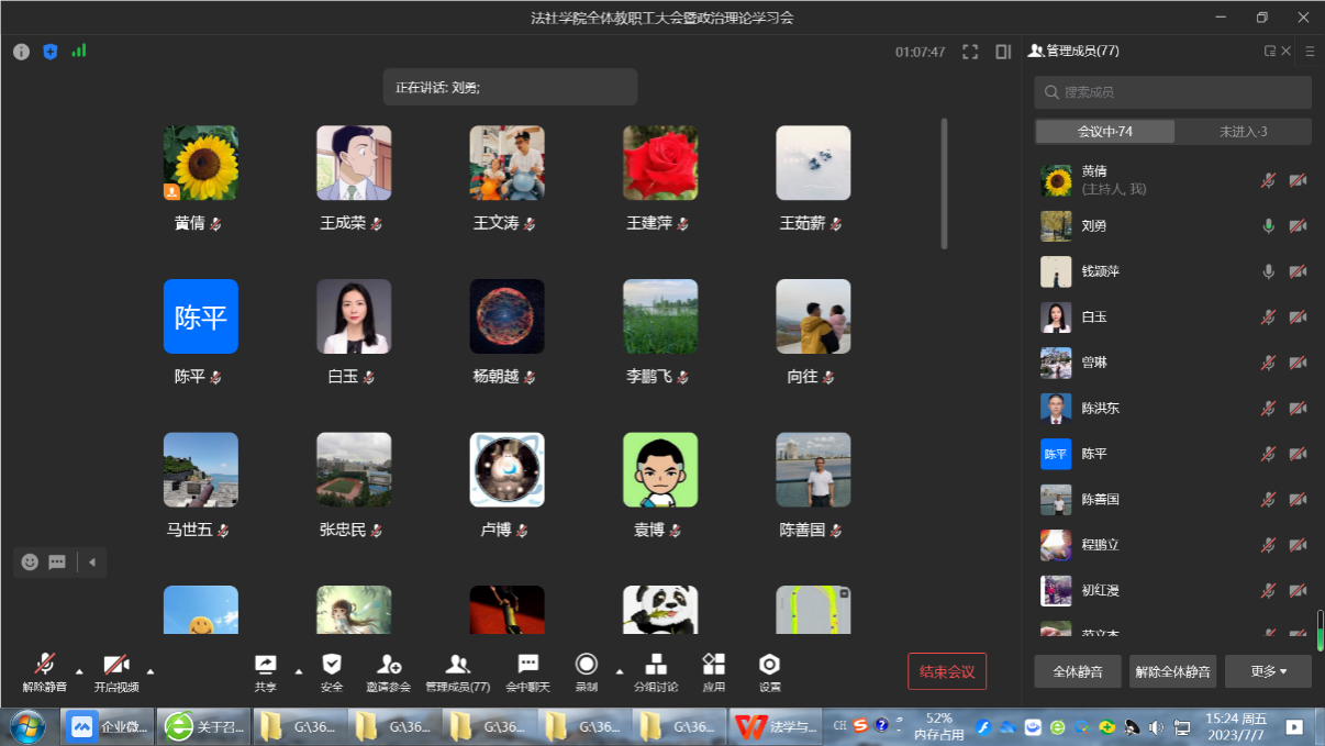 7月7日,太阳成集团tyc151cc在企业微信召开了全体教职工大会暨7月政治理论学习会。会议由公司党委书记李莉莎主持,公司全体教职工参加了本次会议。