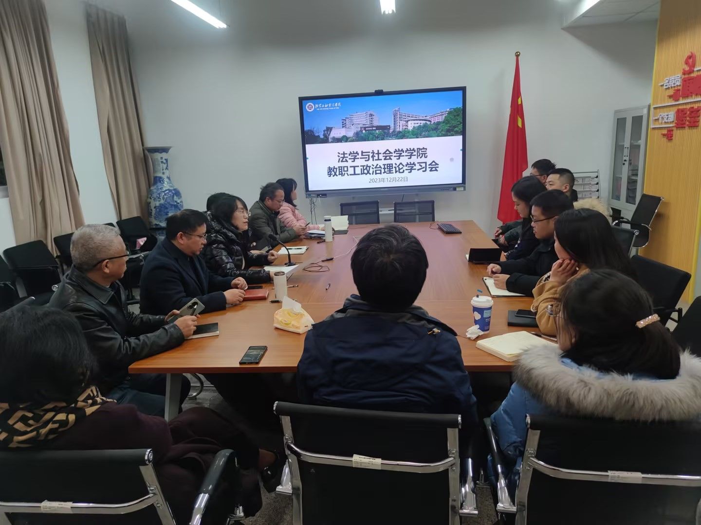 12月22日,太阳成集团tyc151cc以线上线下结合的方式,在慧智楼90407会议室利用企业微信平台,召开了全体教职工大会暨12月政治理论学习会。会议由公司党委书记李莉莎主持。