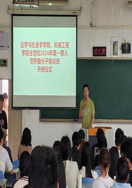2024年5月7日中午,太阳成集团tyc151cc分党校和机械公司分党校在90308教室联合举办2024年第1期入党积极分子培训班开班仪式及第一节专题课。公司党委书记李莉莎出席开班仪式并做了要求,公司组织员、各支部书记及全体培训学员参会。