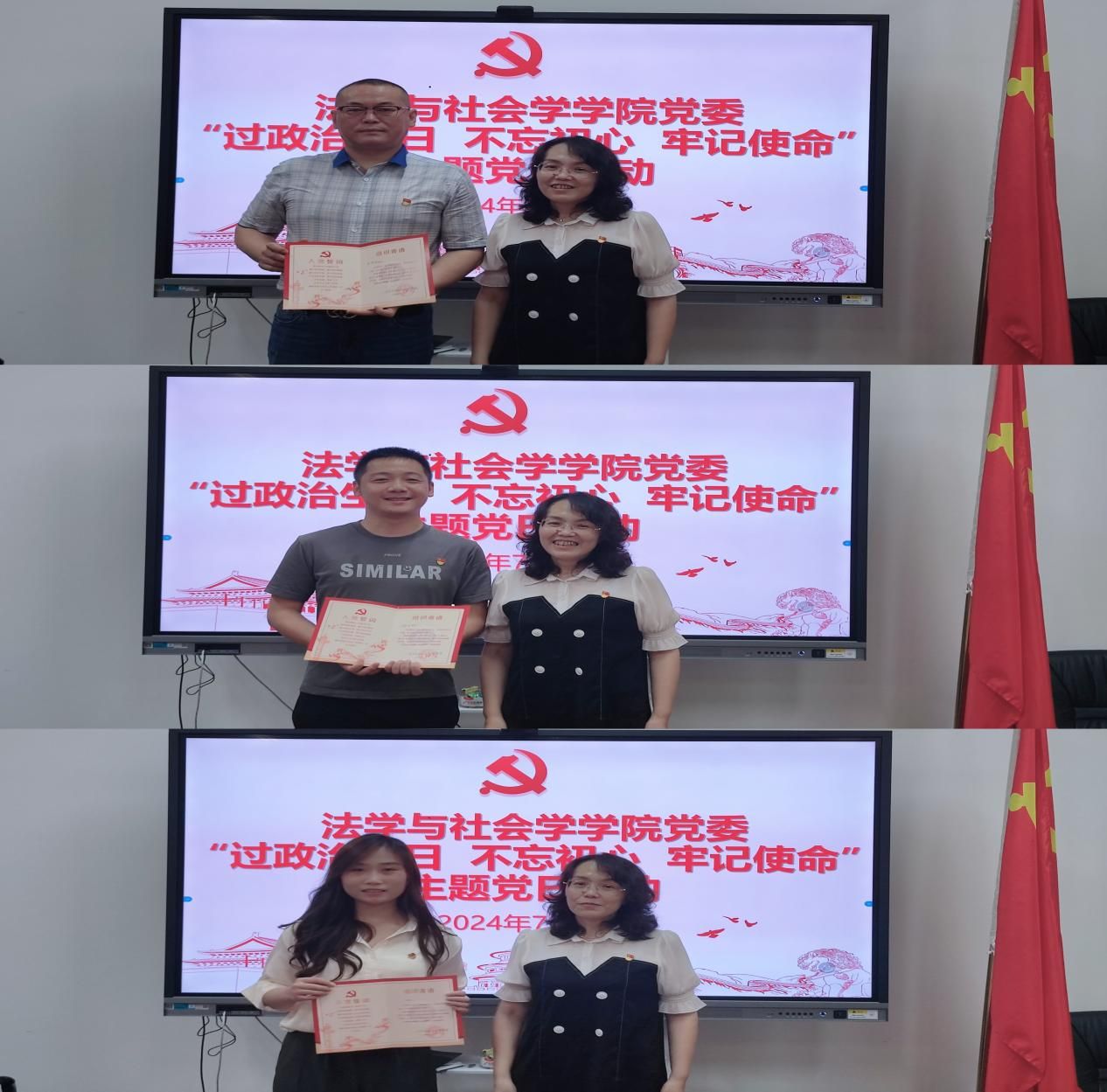 首先,由李莉莎领学习近平总书记重要文章《新时代新征程中国共产党的使命任务》,以及贯彻落实新时代党的建设总要求 进一步健全全面从严治党体系——习近平总书记在中共中央政治局第十五次集体学习时的重要讲话。随后,李莉莎为党员师生代表颁发了政治生日贺卡。教师代表张忠民教授、党支部书记刘桥阳老师、党员员工代表2023级社会工作班高婉君同学先后谈心得体会。