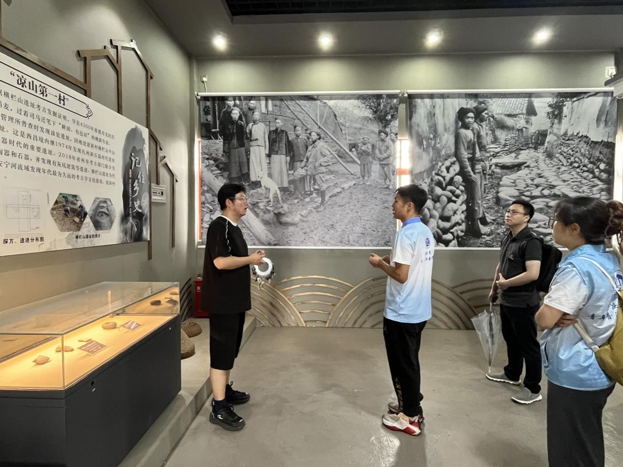 为深入调研凉山彝族地区乡村振兴战略贯彻实施情况,2024年7月11日,团队师生走进凉山彝族自治州西昌市大兴乡建新村村史馆参观学习。大兴乡政府干部甘博为团队师生详细讲解了“凉山第一村”建新村的悠久历史。建新村曾是外界进入凉山彝区的大门,这里保留的古驿道、古遗址、古庙、古雕楼等古建筑见证着凉山的沧桑变化,出土的石斧、青石、陶片等文物更加印证了它的文化底蕴。大兴乡政府积极贯彻新时代乡村振兴战略,以保护利用、以人为本、生态优先的方针展开新农村建设,已经形成大规模绿色产业园助力农民持续增收。