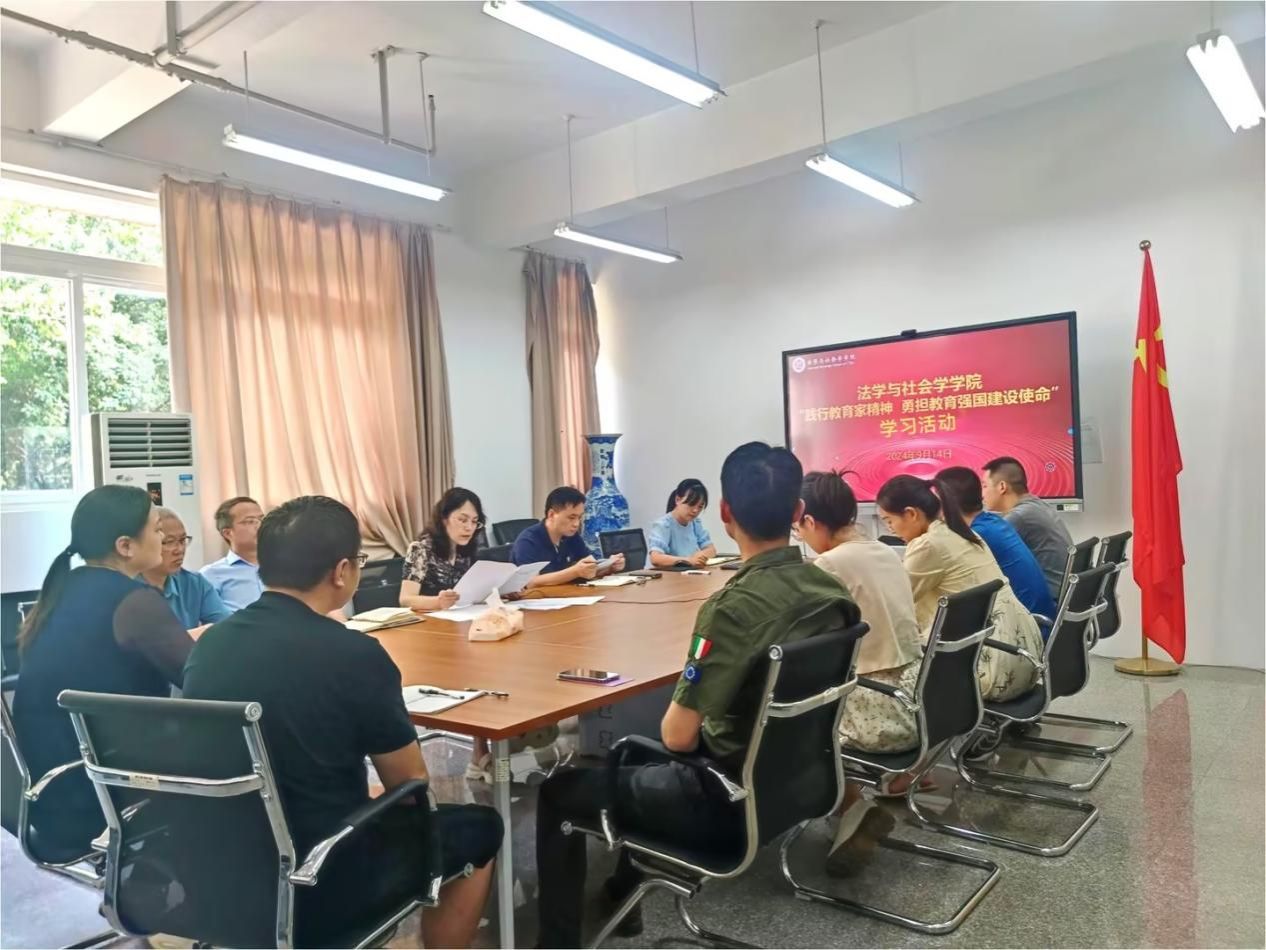 9月14日,太阳成集团tyc151cc在慧智楼90407会议室开展了“践行教育家精神 勇担教育强国建设使命”学习活动,公司班子成员、党委委员、党支部书记、系主任、综合办主任、工会主席、教师代表、辅导员、教学秘书等参加学习,活动由公司党委书记李莉莎主持。