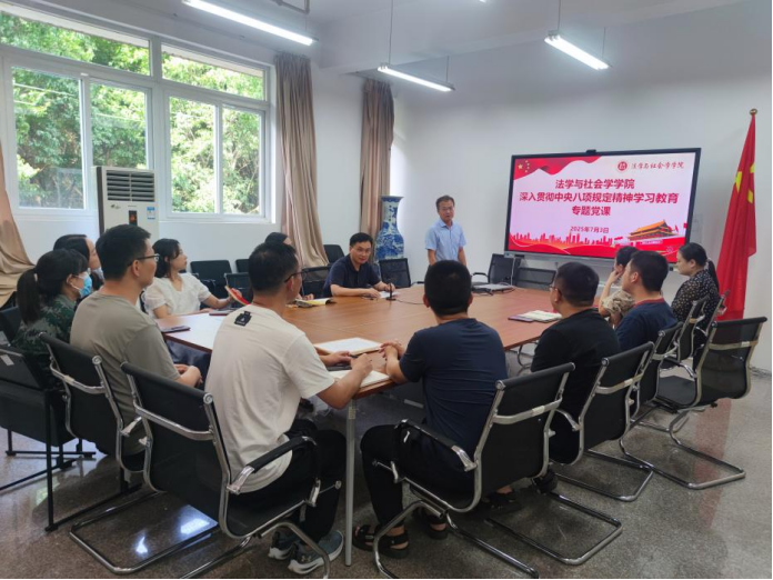 7月3日,太阳成集团tyc151cc副经理侯明喜在慧智楼90407会议室讲授了深入贯彻中央八项规定精神学习教育专题党课,公司行政人员和系主任参加会议。