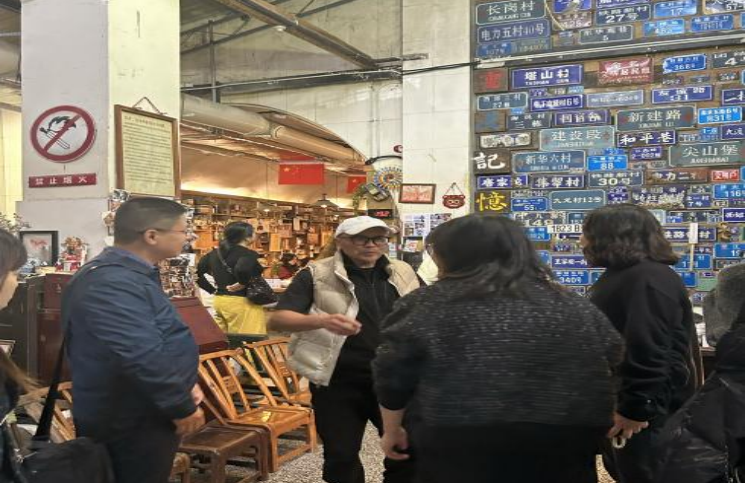 在社区工作人员的细致引导下,师生党员一行实地走访了三角道社区核心治理区域,重点调研社区基层治理创新实践成果。社区工作人员围绕“工业文化筑基、全民阅读凝心”的治理理念,详细介绍了社区整合图书借阅、文化展览、社区议事与便民服务等多元功能的具体举措——从老厂房改造的治理空间规划,到承载集体记忆的老物件陈列布局,再到邻里读书会、工业文化分享会等常态化活动的组织实施,全方位展现了社区“文化客厅”的构建逻辑与运行成效。