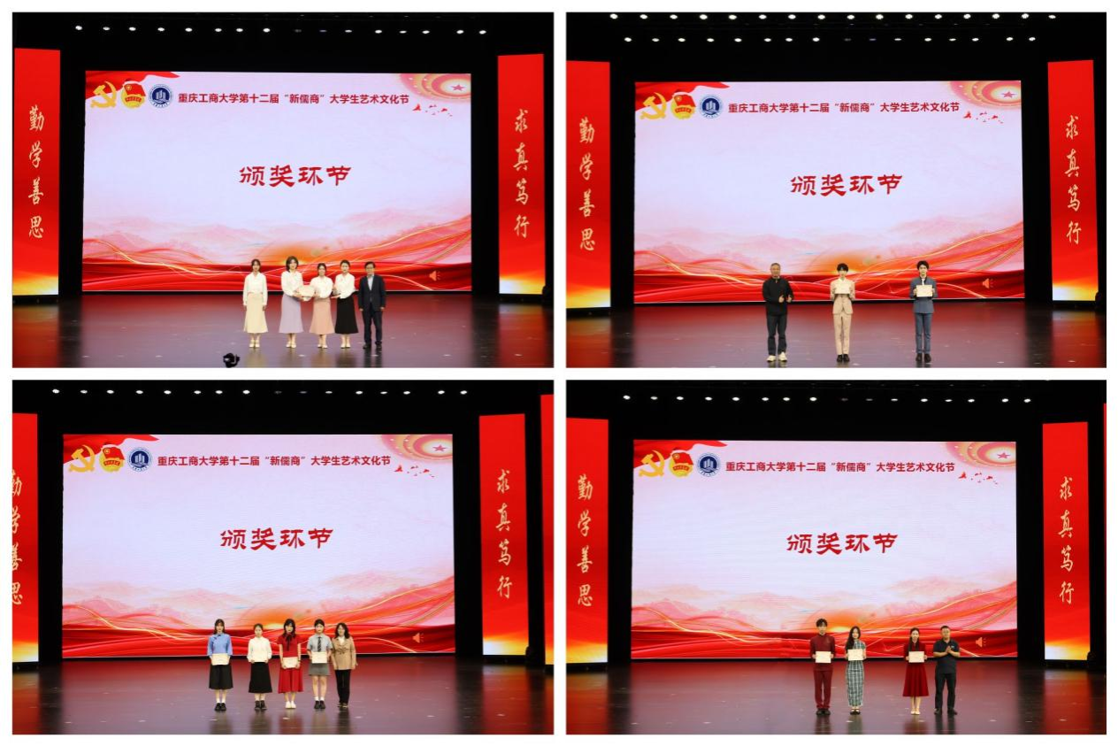 决赛现场,来自7个公司的10组选手以饱满的情感和精湛的朗诵技巧为听众带来了一场精彩纷呈的声音盛宴,选手们或是慷慨激昂,或是深情诉说、娓娓道来。诵读作品风格百花齐放,呈现出重工商大学子朝气蓬勃的青春气息与昂扬向上的精神风貌。星并不远,梦并不远,只要你踮起脚尖,在励志激扬的歌曲《仰望星空》中,本次朗诵比赛圆满落幕。经过激烈角逐,太阳成集团tyc151cc作品《骑自行车的中国人》荣获金奖,与会领导为获奖的队伍颁奖并合影留念。
