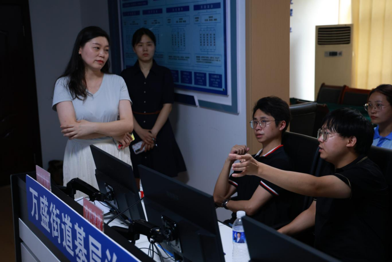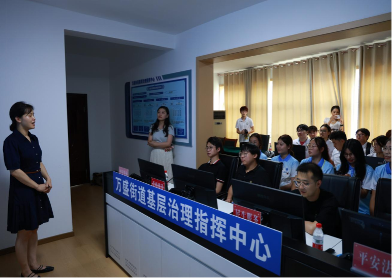 万盛街道党工委组织委员为服务队师生带来了一堂关于基层治理创新的深度探索实践课。在研学过程中,同学们发现万盛街道一体化治理智治平台指挥中心以其独特的“1361 体系架构”和“141体系架构”为支撑,通过能力再造和机构重塑,打破了基层传统治理模式的束缚,实现了扁平化管理和直接调度。讲解员介绍,“1361”里的最后一个“1”是基层治理体系,它包含基层治理的方方面面,万盛街道一体化治理智治基层治理指挥中心就是其中之一,截至目前,全市已有1031个镇街完成了治理中心的打造。这种创新模式大大减轻了基层负担,使线上处理成为常态,线下处理成为例外。