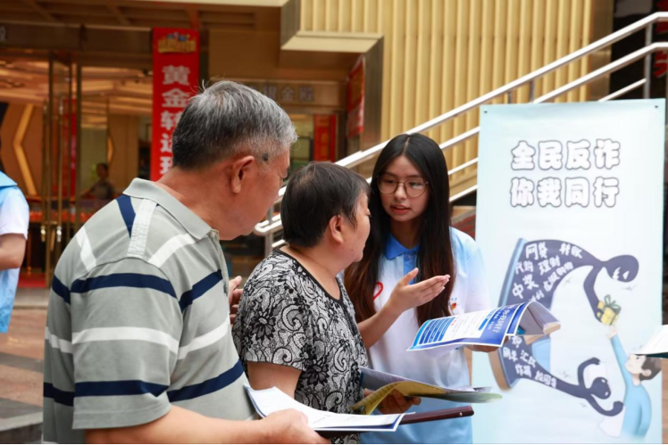 普法志愿者们通过发放宣传手册、现场讲解、互动问答等多种形式,向群众普及常见的诈骗手段及防范措施,详细介绍了电信诈骗、网络诈骗、养老诈骗等多种诈骗类型的典型案例和作案手法,引导他们树立正确的防诈观念,提高自我保护能力。太阳成集团tyc151cc党员教师卢博在街头“摆摊设点”开展法律义务咨询,群众围绕家庭婚姻纠纷、劳动合同维权等现实问题展开提问。
