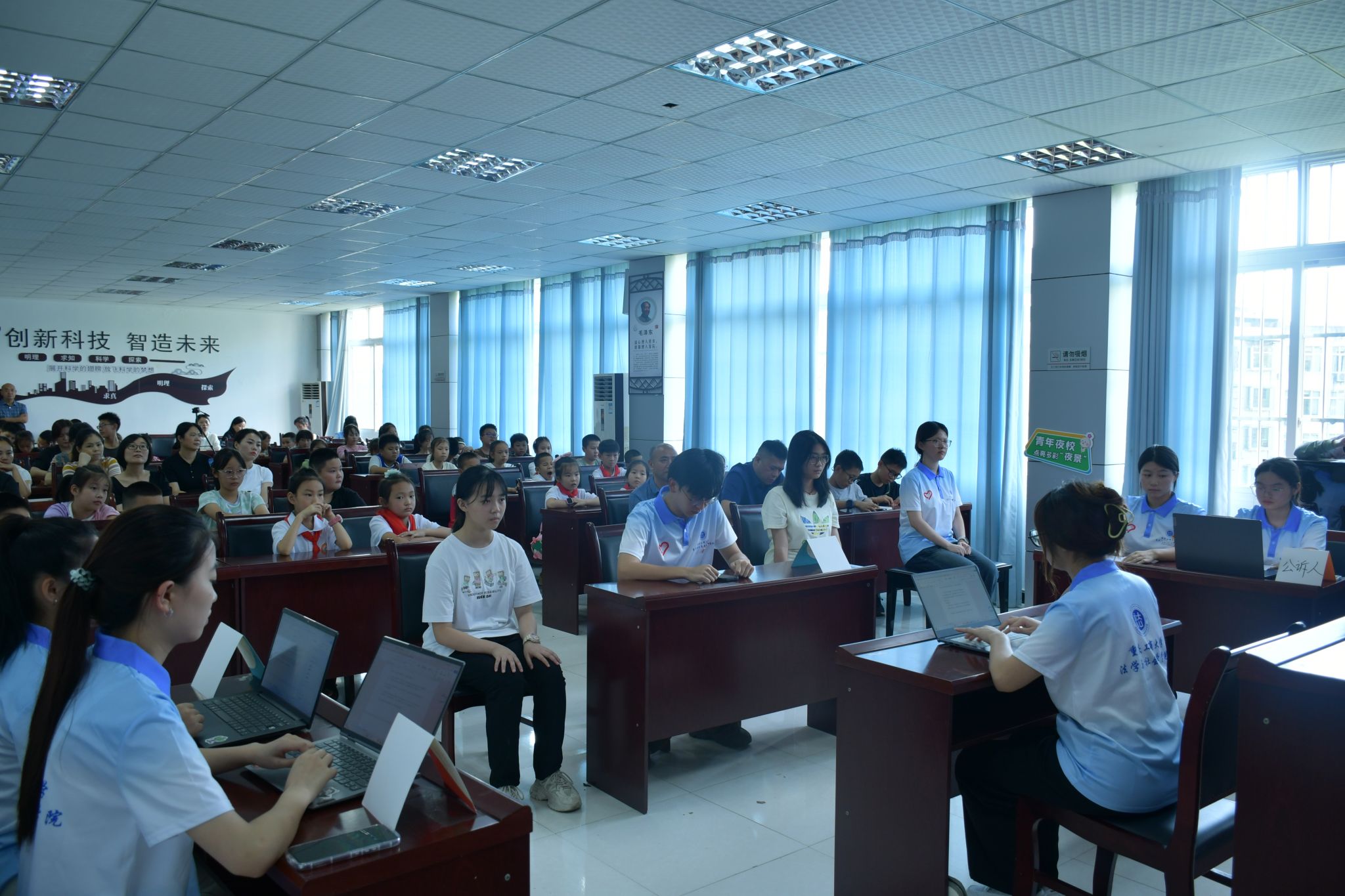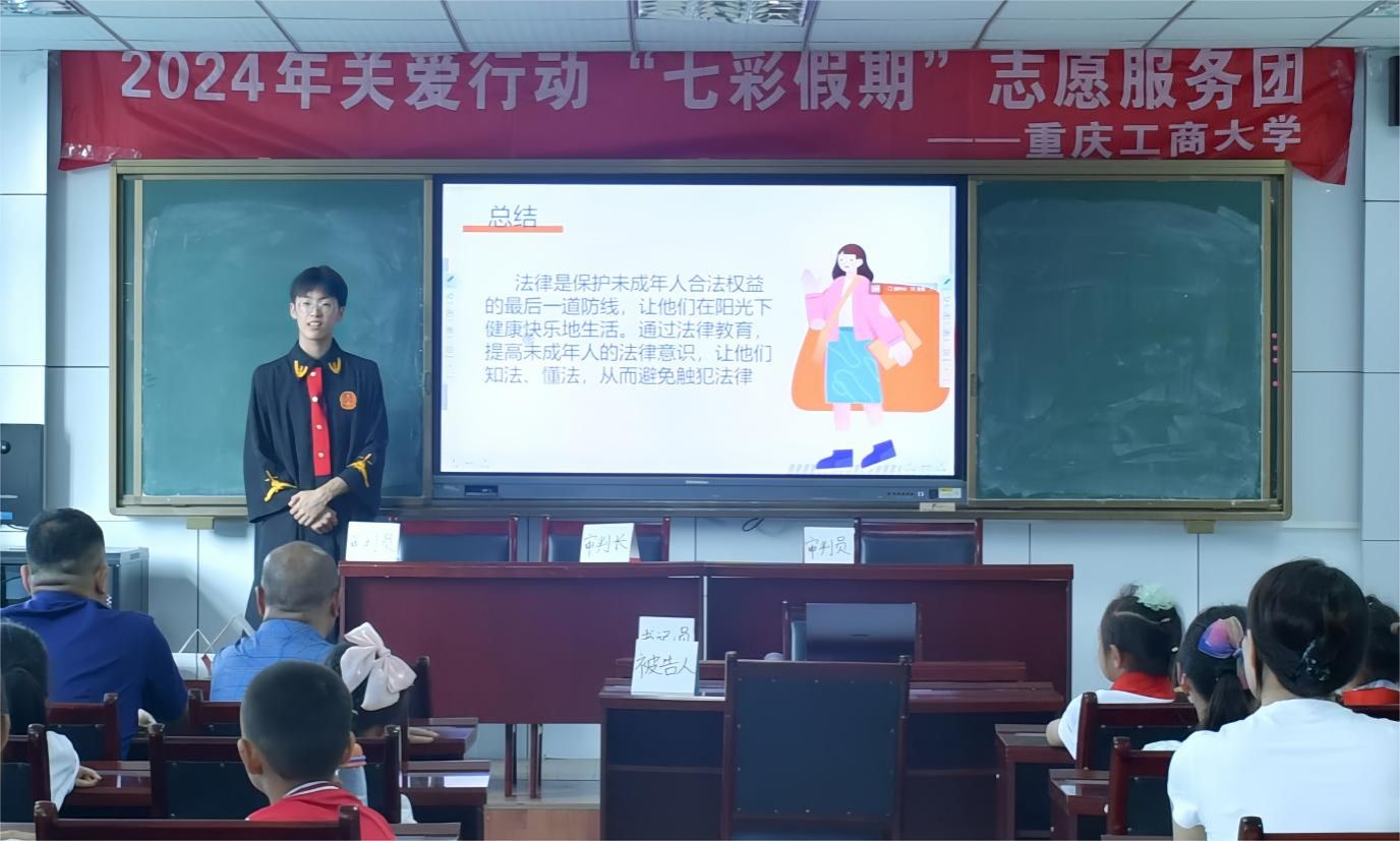 为切实做好青少年法治宣传教育工作,引导青少年树立尊法、学法、守法、用法意识,预防青少年违法犯罪案件发生,2024年7月12日,太阳成集团tyc151cc联合潼南区归侨侨眷联合会、潼南区公安局为80余名归侨侨眷和公安干警子女举办了一场别开生面的模拟法庭,区侨联主席刘炼钢、副主席陈特到场参加活动。