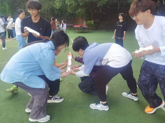 活动现场热闹非凡,来自全校各个公司专业的协会会员们个个精神抖擞,跃跃欲试。此次素质拓展活动内容丰富多样,设计巧妙地融合了趣味性与竞技性。其中,运气球项目备受瞩目。需要相邻两名队员背对背将气球运到终点,这考验着他们之间的默契程度。在比赛过程中,有的组合心有灵犀,动作整齐划一,顺利完成挑战;有的组合虽状况百出,但他们相互鼓励,不放弃的精神赢得了阵阵掌声。“创意乒乓球接力”也吸引了众多目光。各个小组需要使用独特的道具传递乒乓球,比如用勺子、书本等。这一项目激发了社员们的想象力和创造力,大家在欢笑中完成接力,也深刻体会到了创新在团队活动中的重要性。此外,还有“高手挑战赛”,社团中的精英选手们展开了激烈角逐。精彩的扣杀、巧妙的旋球、敏捷的扑救,每一个精彩瞬间都让观众们热血沸腾,欢呼声、叫好声此起彼伏。
