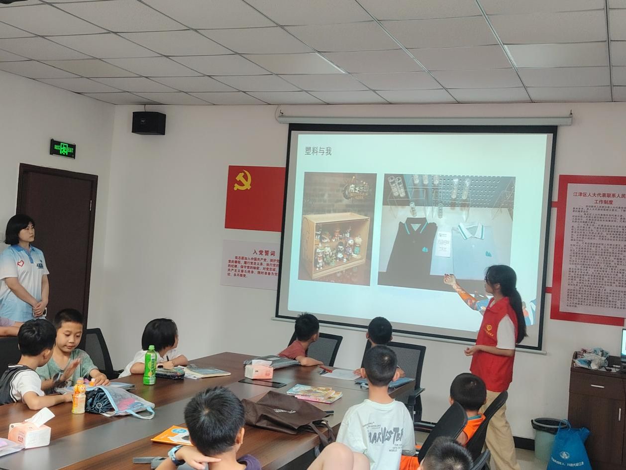 志愿者通过展示塑料污染对海洋生物、自然景观的冲击画面,迅速抓住孩子们的注意力,成功开启了一场寓教于乐的环保探索之旅。“塑料会威胁动物的生存吗?”“大象、大树和塑料有什么关系?”志愿者们深入浅出地讲解塑料的来源、降解难题及生态危害。孩子们在轻松互动中,系统掌握了塑料污染对陆地、海洋生态系统的双重影响,对“白色污染”形成了直观认知。