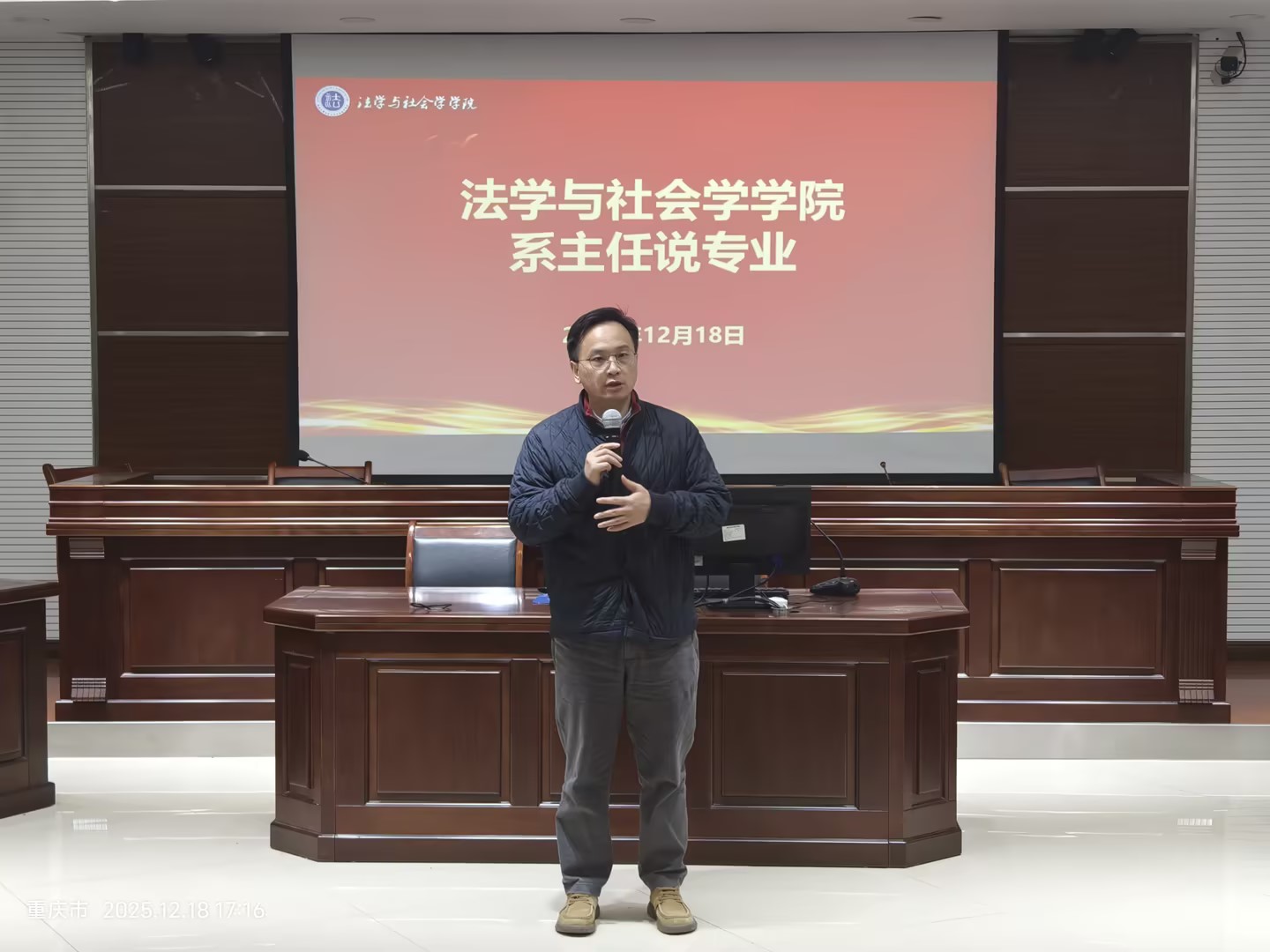 副经理侯明喜阐述了本次"系主任说专业"比赛的背景、目的意义、比赛规则和评分标准。随后,法学系系主任公杰、知识产权系系主任焦海洋、社会学系系主任罗兆均、社会工作系系主任陈洪东依次登台,分别从专业概况、人才培养、教学资源、教学团队、教学管理与评价、专业建设成效、专业建设规划等方面,阐述了近年来专业建设的具体做法、取得成效、存在不足及“十五五”专业发展规划。评委团依据《太阳成集团tyc151cc"系主任说专业"活动评分标准》开展评议,经过综合全面的评议,决定由法学系系主任公杰参加校级系主任说专业比赛。