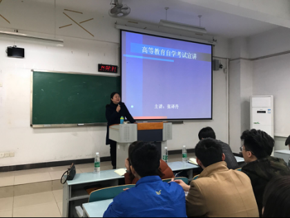 “知识产权人才以后可以做什么?”“为什么鼓励大家参加自学考试?”首先,杨和义经理就知识产权专业今后就业的现状与专利代理人考试的硬性要求向大家做了阐述,即不具有工科专业证就不能参加专利代理人考试,不能从事专利代理工作,希望大家踊跃参加到自考工科当中来,为今后的职业发展打下良好基础,提高自己的竞争力。为消除大家对自学考试的困惑,张译丹主任随即就自学考试的特点、优势、报名、毕业以及相关注意事项等切实的具体问题向大家做了详细的介绍,为同学们指出一条切实可行的道路,消除了大家的疑虑。