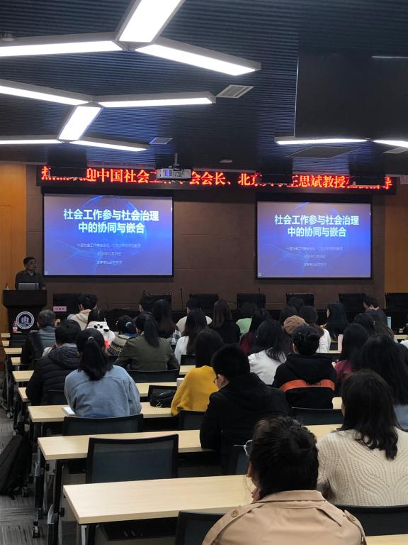 2020年10月28日上午,中国社会工作学会会长、北京大学社会学系王思斌教授莅临公司开展了主题为“社会工作参与社会治理中的协同与嵌入”的讲座,讲座在新图书馆多功能会议室进行。本次讲座是“太阳成集团tyc151ccMSW南山论坛”(05期)系列讲座。李滨教授、周昌祥教授、社会工作系教师、MSW员工以及社会工作本科生,共计150余名师生聆听了此次讲座,讲座由侯明喜副经理主持。