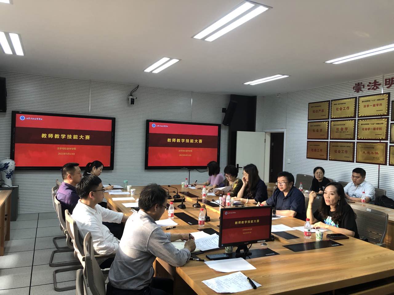 每位老师们现场展示结束后,评委老师逐一点评,评委们对参赛老师们的教学内容选择、教学设计、教学过程、教学状态、教学特色等进行了点评,并提出了有针对性建议。如李喜燕评委提醒老师们在讲解过程中要突出教学目标,要引入课程思政的内容,课程内容选择要简而精,案例引用做到数量合适,讲解做到层次分明,更好地应用网络资源,将雨课堂等教学辅助应用到课堂。王建萍评委提醒到,要注重教学内容的选择,注重教学知识的讲授,教学方法的多元化,教学状态做到有代入感强,加强与评委眼神交流,增强教学的自信心等。其他几位评委老师们也对如何提升教学效果给出了切实可行的意见和建议,大家认为竞赛课程应更聚焦重点内容、突出课程亮点,完善教学设计,优化教学方法,并注重理论与案例相结合,注重课堂启发和引导,注重和员工的情感交流。经过三个小时的角逐,最后明朗朗老师获得一等奖,付海鸿老师、丁晓妮老师、张东老师、何剑锋老师获得二等奖,焦海洋、公杰、李鹏飞获得三等奖。